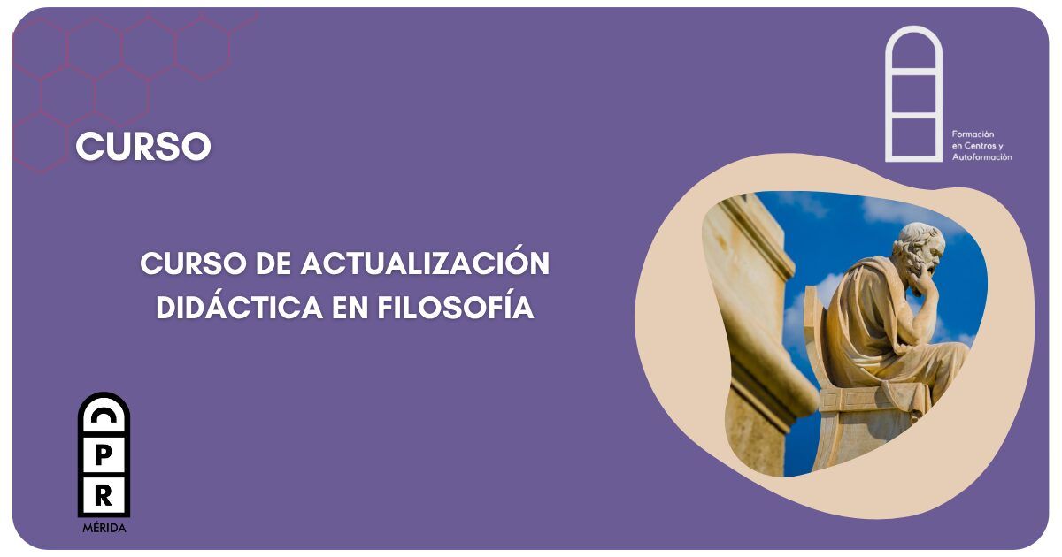 El CPR de Mérida organiza el curso “Actualización Didáctica en Filosofía”, dirigido al profesorado de la especialidad con el objetivo de renovar su práctica docente y conectar con el alumnado desde una mirada actual, creativa y competencial.